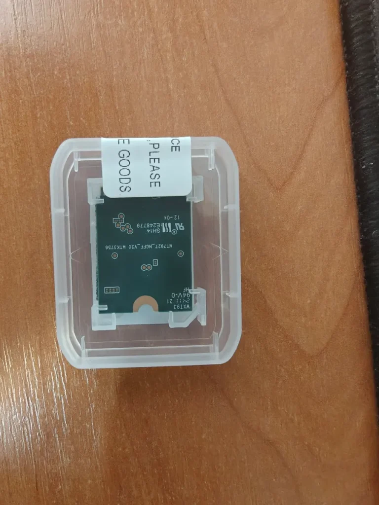 Полностью рабочая железка. Все характеристики соответствуют заявленным. Ноут Machenike L16P, роутер ASUS GT-BE19000, работает на 6Ghz, ширина канала 320Mhz, скорость 5764 Mbps. Все более чем устраивает. Продавцу спасибо!